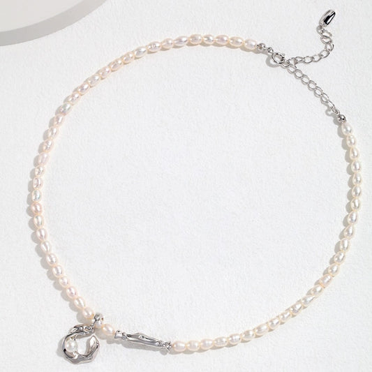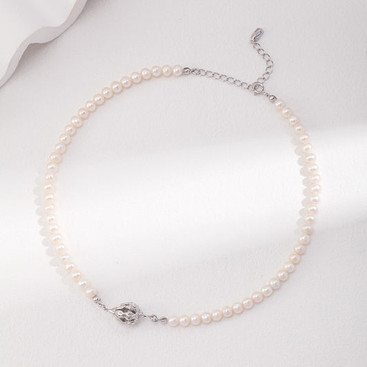 flower shadow-Skeleton Flower Cluster Natural Pearl Necklace