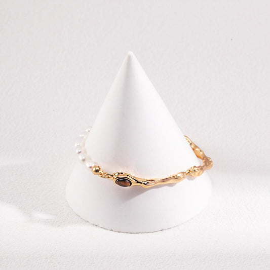 Twins-Split Double Natural Pearl Ring 18K Gold Plated