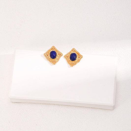 Amulet-Red agate, lapis lazuli, 18k gold plated earrings