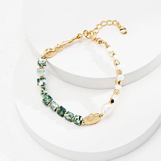 Colored Glaze-Qinghai Jade, Pearl, Mother of Pearl Bracelet