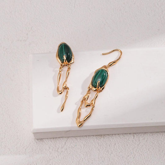 Forest- Sterling Silver Malachite Asymmetrical Earrings