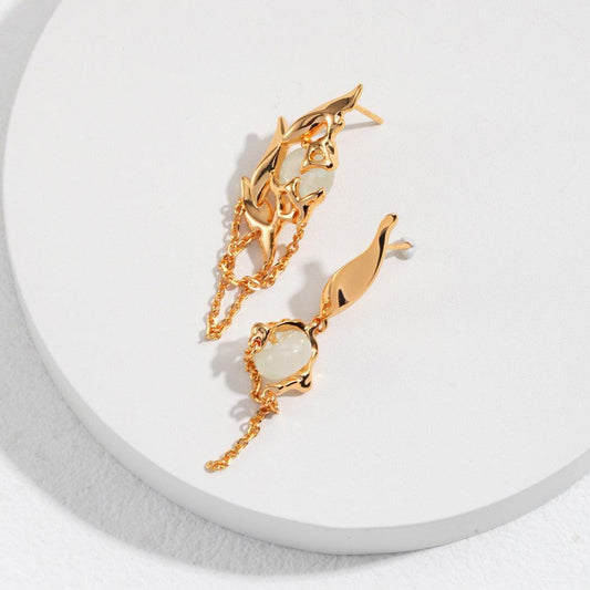 Phantom-Sterling Silver Quartzite Jade Asymmetrical Earrings
