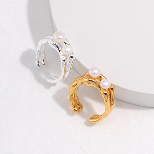Twins-Split Double Natural Pearl Ring 18K Gold Plated