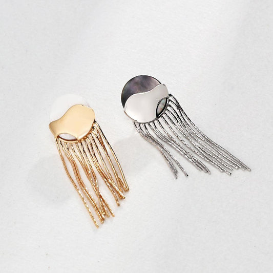 Tide-Elegant, Long Black Shell Earrings 18k Gold-Plated Hypoallergenic