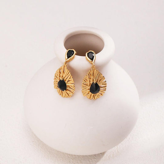 Dark Night-Elegant, Black Zirconia Earrings in 18k Gold-Plated Hypoallergenic Women's Jewelry