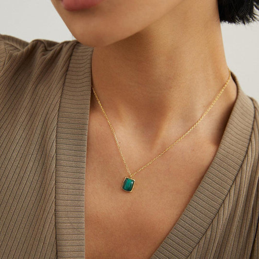 Green Meadow-Sterling Silver 925 Malachite Necklace 14k Gold Plated