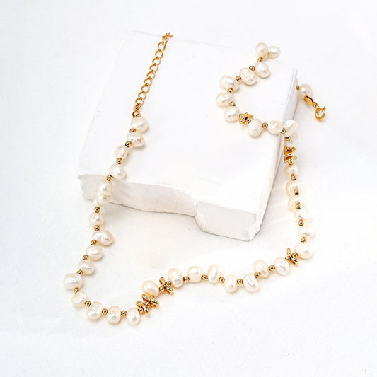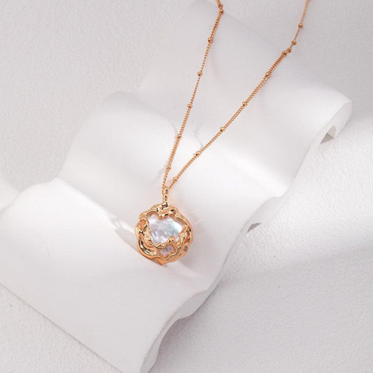 Moonlight Falls - Agate Natural Pearl Necklace Electroplated with 18K Gold